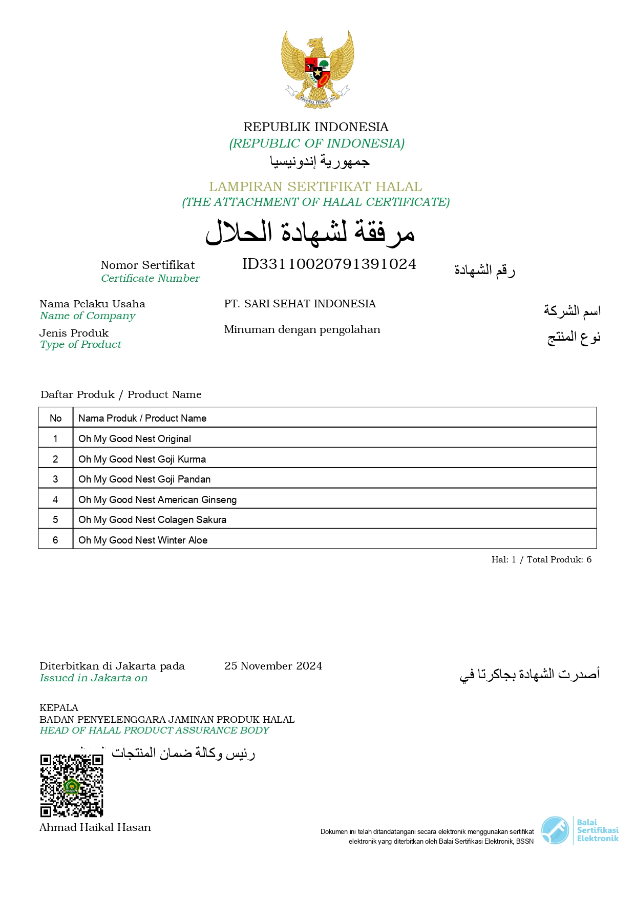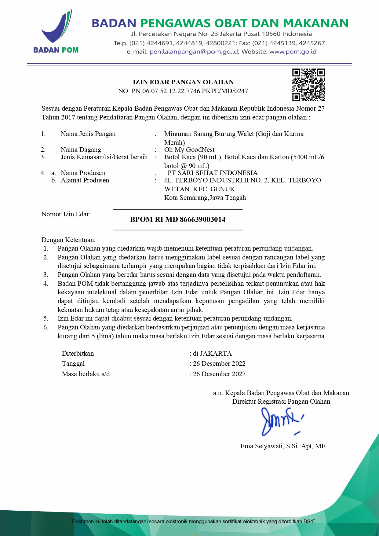 BPOM Certificate Variant Original